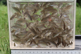 11時過ぎから昨日に引き続きタイリクバラタナゴを確認します。数匹掛けると