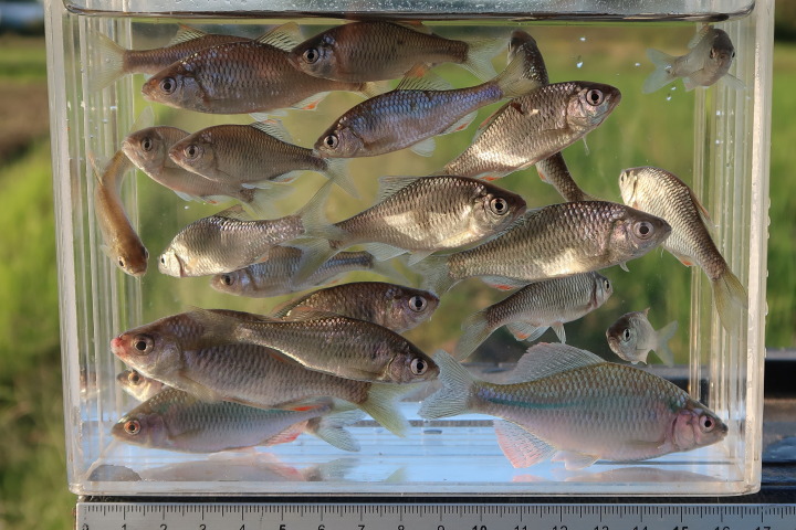 2時過ぎからヤリタナゴを確認します。オスを求めて雑魚を避けるために