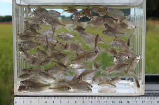 昼過ぎからタイリクバラタナゴを確認します。昨日の雨で水位と最低気温も上がり