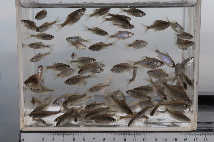 11時過ぎからタイリクバラタナゴを確認します。小型が比較的多い場所に入りました。