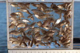 昼前に高透明度の場所でヒラウチを確認し、浅タナで小気味よい当たりを探ってゆきます。