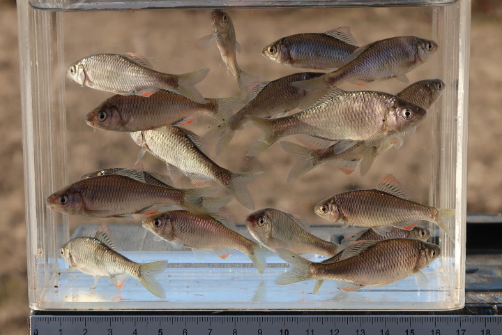 1時過ぎからヤリタナゴを確認します。小移動の連続で障害物周りを