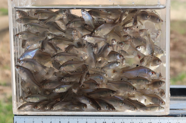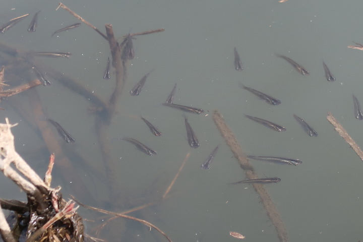 よく釣れていると、10時過ぎ位にメダカの群れが通過しました。当たりが